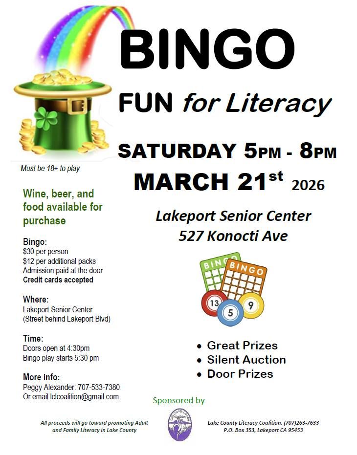 It was an abolutely pleasure hosting Jo Fay and Deb Earhart on Episode 3! We learned all about how the Lake County Literacy Program works and how to get involved. For more information, you can go to their WEBSITE. You can also call them at (707) 263-7633 or email at lclcoalition@gmail.com